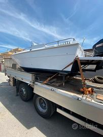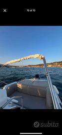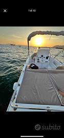 Vendo barca open 6,50 mt completa di motore mercury 150 cv Optimax 2 tempi iniezione Barca spaziosissima e completa di tutto: cuscineria completa,tendalino tre archi in acciaio,doccia,impianto stereo,luci led sia di via che in pozzetto,verricello elettrico,ampia spiaggetta con scaletta risalita,doppia batteria,e ampi gavoni,seduta davanti alla consolle che si piu chiudere allungando il prendisole anteriore. Il motore parte a mezzo giro bisogna controllare alternatore Vendo per passaggio a categoria diversa.accetto scambi.