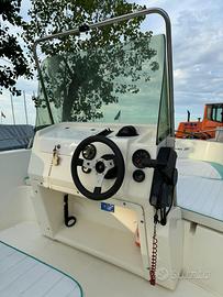 Vendesi Fiart Marea 20. Scafo lungo 6 metri e largo 2.30 metri. Scafo tenuto in buone condizioni sempre a secco e mai in porto. Non presenti in foto, ma aggiunti prima della stagione radio con 2 casse doccino e tendalino a 3 archi. Motore Evinrude 70cv 2 tempi, anche se un pó datato sfruttato davvero poco, parte a primo colpo. Girante e tagliando piede eseguiti pre stagione (20 ore). Consumi davvero irrisori pur essendo un 2 tempi. Serbatoio acqua 60 litri, doppio serbatoio benzina per un totale di 90 litri. Cuscini in buone condizioni. Luci via tutto funzionante. Pompa di sentina elettrica. Tavolino richiudibile dietro la seduta centrale. 2 gavoni posteriorei più vano a prua. Navigazione davvero pulita data la stazza della barca. Lo sterzo non é quello presente in foto ma sostituito con uno bianco. Per ulteriori informazioni non esitate a contattare. Prezzo poco trattabile date le buoni condizioni scafo/motore.