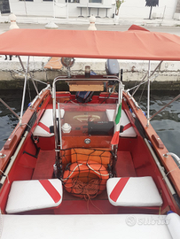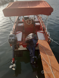 Vendo barca di 5,00 mt in vetroresina rifinita tutta in legno marino nei minimi particolari, è dotata di doccetta di acqua dolce, parabordi, tendalino, led blu, bussola, luci di via, 2 pompe di sentina doppia batteria (una da 80A e l'altra da 100A), stacca batterie, tappezzeria nuova e in ottime condizioni, tutto l'attrezzatura che necessita per la sicurezza in mare. Molto comoda per le uscite in famiglia dato che è presente un ampio prendisole eanche comoda per la pesca. Il motore è un evinrude 737 25/40 CV 2 tempi. Motore di scorta selva 4 tempi 6 CV al momento la barca è Rimessata in giardino ben protetta chi è interessato può chiamarmi al numero 3450456199