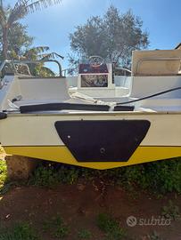 Barca open fuori tutto 6.00metri con motore 90hp Mercury o 40/60 senza patente con carrello omologato gomme nuove e cerchi verniciati a caldo ,la barca è in perfette condizioni impianti elettrici nuovi con centralina fusibili quadro in carbonio specchio di poppa in carbonio e vari può essere fornita in tutto pronta all’uso a scelta dell’acquirente