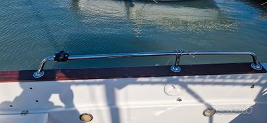 Barca da 6.20 mt. con cabina dove è possibile stivare ogni genere di attrezzatura (cuscineria, dotazioni, attrezzature varie) Barca attrezzata da me per la pesca, con 5 porta canne in acciaio inox. E' dotata di ampio pozzetto con murate alte 60 cm. parzialmente ricoperto da robusto T-Top in Acciaio L'imbarcazione è dotata di 4 luci a Led nel pozzetto ed una luce a Led sotto il T-Top. L'impianto elettrico comprende luci di navigazione, tromba elettrica, pompa di sentina ( ma la barca è auto svuotante ), Amazon Alexa, Ecoscandaglio Lowrance Hook Reveal 7" con cover di protezione, VHF Lowrance Link-6S ( con antenna esterna e cover di protezione ), batteria da 80 A . A corredo del motore Mercury 40Pro, è installato un'interfaccia bluetooth originale Mercury VesselView Mobile con la quale è possibile monitorare tutti i parametri di funzionamento del motore : Consumo istantaneo, numero di giri, velocità dell'imbarcazione, benzina residua nel serbatoio, ore di moto totali del motore, autonomia residua nonché tiene traccia di tutti gli interventi di manutenzione ( i dati vengono visualizzati in un App sullo Smartphone ). L'impianto elettrico comprende anche un antifurto. Timoneria idraulica MAVIMARE. Il motore è inoltre corredato da una Trolling valve Mercury tramite l'interfaccia digitale SmartCraft Mercury. Tramite quest'interfaccia è possibile variare il numero di giri dal minimo ( 720 rpm. ) sino a 1000 giri/min. con step di 10 giri per volta. Dotazioni di sicurezza entro le 6 Miglia più altre cose (cime etc.). La barca è dotata di serbatoio in Eltex da 43 litri. Il motore, del 2015, ha 700 ore di navigazione ed è sempre stato tagliandato come prescritto dal costruttore.