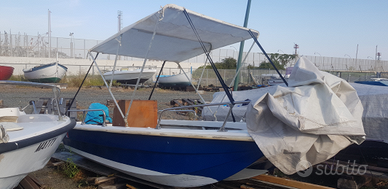 Vendo barca con motore Jonson 25cv lunga 4,50x1,60 molto spaziosa, pannello elettrico nuovo, tendalino, pompa di sentina, staccabatteria, telo copribarca ecc