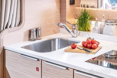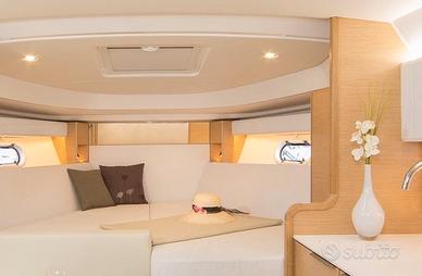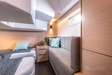 Doccia in locale wc, pompa sentina vano mootre, elica di prua, verricello elettrico con 50 mt di catena ed ancora da 16 kg, teak in pozzetto, plancetta di poppa maggiorata in teak, frigo in pozzetto e frigo in cabina, pacchetto luci esterne, materassi memory, pacchetto luci interne, oscuranti in dinette e cabine, stereo, flap elettrici Bennet, wc elettrico, prendisole di prua, gps Simrad 9", vhf, camper cover, cuscineria esterna suntex, rivestimenti interni in rovere sbiancato e pavimento wenge', aria condizionata, cuscina interna e d esterna, cabalggio tv , presa usb in pozzetto, contacatena, tasti a prua per comando verricello, ombreggiante a poppa, commissione a parte