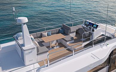 Scafo "Fusion" Dixon Yacht Design: navigazione e manovrabilità efficienti. Nuovissime pinne stabilizzatrici elettriche Sleipner Vector Gen 3: eccellente stabilità e controllo a 360°.