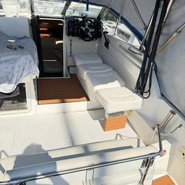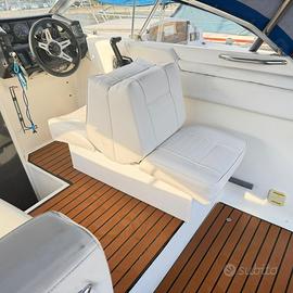 Barca in perf. condizioni con motore iniezione rimesso a nuovo agosto 2019. Ore moto 105. Nel Luglio 2025 revisione e tagliando completo cambio elica e guarnizioni piede tutto documentabile. Cambio timoneria e scatola sterzo. Pompa flap nuova. Velocità 35 nodi a 4000 giri. . Wc elettrico - lavandino -frigo/freezer.-2 doccia esterne - 1 in prua 1 in poppa -cuscinerie appena rifatte. Luci di fondo e faro radiocomandato -tavolo legno intarsiato da usare in cabina o esterno - letto due posti più lettino sotto plancia. Radio Tv. 1batteria motore -1 batteria servizi -2 batterie emergenza con carica da pannello solare. Carica batterie nautico -2 pompe sentina.serbatoio centrale orizzontale + serbatoio scorta in plastica -motore entro fuoribordo mercruiser 4300 i -2 pompe di sentina -flap elettronici. Tendalino estivo più tendalino invernale. Sempre stata in acqua dolce. Teck sintetico appena rifatto e sedile di guida con quello doppio foto allegata.