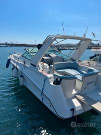 Vendesi barca a motore yacht cruisers Americana lunga 9,90 e larga 3,20 Doppia cabina a poppa e prua Dinette interma trasformabile in letto matrimoniale Bagno elettrico con doccia Cucina con tre fuochi e lavabo interno Due motori Volvo Penta Aqad41b turbo diesel 200 hp ciascuno Piedi poppiero duoprop Eliche a6 installate a5 Doccia esterna (acqua calda) Lavabo esterno Capacità acqua dolce 200 LT Carburante capacità 700 litri