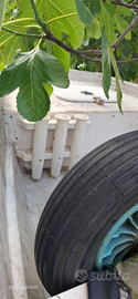Vendesi barca da fiume in vetroresina leggera 70kg con cartello basculante, completo di libretto e motore evinrude gambo corto 6CV,con libretto