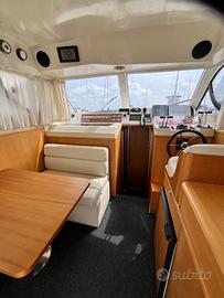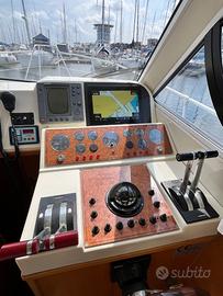 Barca a motore DC9S 2 c 370 cv Iveco Aifo, prima immatricolazione del 2004, lunghezza ft 10,57 mt, larghezza 3,08 mt, pescaggio 1,5 mt, velocità croc/max 26/33, 650 h di moto, tagliando motori annuale, capacità carburante 600 litri, capacità acqua 200 litri, generatore Mase IS 2500 con 15 ore di moto, 2 cabine, posti letto 4 + 2, wc elettrico, cucina, frigorifero, ecoscandaglio/gps/plotter Garmin del 2023, radar, vhf. Impianto stereo, batterie 2025 3 X 150 Ah senza manutenzione, caricabatterie, autoclave, boiler, doccia esterna, flaps, cuscinetta prendisole di prua del 2023, carena portata a zero nel 2024, antivegetativa del 2025, cablaggio elettrico di entrambi i motori sostituito nel 2024, ulteriori foto e dettagli possono essere forniti a richiesta. La barca è visibile in Adriatico Settentrionale. vengono forniti anche passerella in alluminio, gruette e tender gonfiabile.