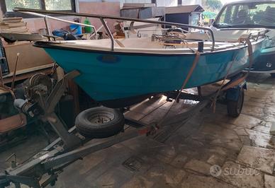 Barca a motore a doppio fondo + carrello + accessori nautici. Motore da provare Misure orientative 4,5m lunghezza 2m larghezza