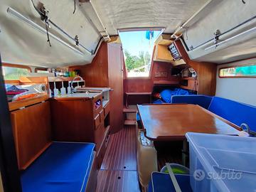 avevo acquistato tre anni fa questa barca di 8 mt con deriva mobile che però non funzionava - rivelatasi non riparabile. non potendo sollevare la deriva mobile ed avendo un pescaggio fisso di 1,60mt che limitava gli accessi al posto barca di proprieà in laguna, avevo smontato la parte mobile in ghisa, lasciando solo la parte fissa di zavorra, chiuso il vano con robusto tappo in composito armato e zavorrato, cui saldai una generosa pinna fissa in vtr con scarso pescaggio (0,70). trasformando quindi la stessa per un uso prevalente a motore (Faryman OK entrob 12 hp)o con velatura ridotta da procurare, dato che albero e vele preesistenti non sono più applicabili, e non sono incluse . data l'età avanzata la cosa mi sembrava accettabile. recentemente una malattia mi impedisce di pensare anche ad un utilizzo a motore ed ho deciso di svendere. no sms, solo tel ore pasti grazie