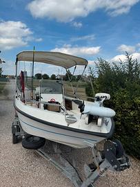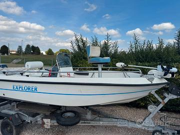 Vendo per inutilizzo barca Sidra Explorer mt 4,7 x 1,9,carrello basculante ellebi kg 650 (revisione scaduta 09/25) con fanali nuovi.Motore Yamaha Top 700 2 tempi 25/50 cv (con libretto) avviamento e trim elettrico.Sono presenti motore elettrico di prua watersnake con comandi a pedale e 2 batterie al gel da 100 Amp.in dotazione serbatoio da 50 lt con indicatore in console più uno da 30 lt,pompa di sentina tendalino e rollbar. Prezzo trattabile.