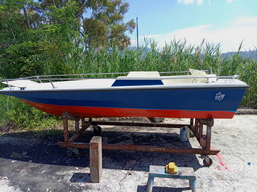 Barca comoda per la pesca, stabile in vetroresina spaziosa 4.30m con motore da 9cv con libretto vendo per non utilizzo compresa pompa di sentina.