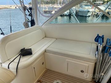 Motorizzato con n° 2 volvo D6 435 conTROLLING VALVE generatore di energia da 5 kw cucinotto interno con frigo microonde e piano cottura ad induzione ,camera con letto matrimoniale bagno con doccia con boiler per produzione acqua calda ,serbatoio acca potabile da 200 LT postazione di guida con ecoscandaglio con trasduttore da 2 kw autopilota e vhf dinet modificata con teak in tutta la barca con divanetto e tavolo per pranzare .