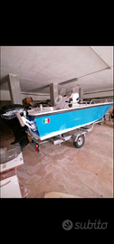 barca mt. 5,30 con tutta l'attrezzatura di bordo, luci notturne, 2 ancore, 2 batterie, tendalino, ecoscandaglio, carrello omologato(da revisionare), conpleto di verricello elettrico da montate. la barca la possiamo provare in mare in qualsiasi momento.