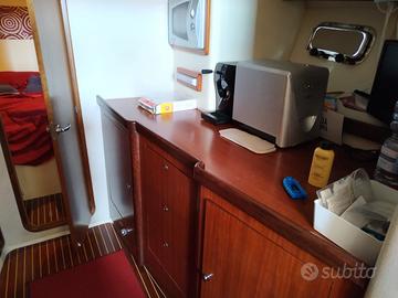 Full optional, in particolare radar, aria condizionata, tek pozzetto e cabina, hard top in vetroresina originale Gagliotta, plancetta allungata, generatore 3,5kw, sbarco e manutenzione straordinaria motori anno 2024 con turbine-raiser-scambatori-revisione coni piedi poppieri a 1200 h di navigazione, tendaggio completo, versione 2 cabine-1 bagno, prezzo trattabile, commissione a parte