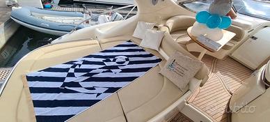 Teak in pozzetto, generatore Mase 5 kw, inverter, verricello,passerella idraulica esterna, bimini top, chiusure laterali, drop curtain, copriconsolle, faro elettrico, tender 1.80 mt con motore Honda 2.3 hp-4tempi, impianto antincendio, flaps, elica di prua, mobile esterno con grill-frigo e lavabo, dinette trasformabile, vhf, eco, gps, autopilota, tv, radio stereo, a/c, cucina, forno, microonde, 2 frigo, doccia pozzetto, prendisole prua e poppa, commissioni a parte