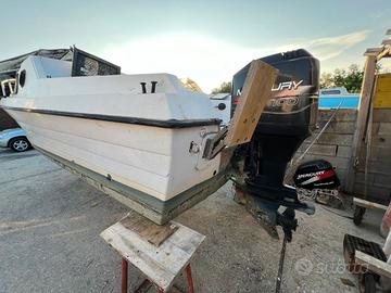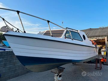 Barca a motore semicabinato con cuccetta, prendisole a prua e pozzetto a poppa. Motore due tempi Mercury 100cc, tagliandato tutti gli anni, ultima revisione scorso Maggio. Pannello solare per ricarica batteria. Per qualsiasi informazione sono a disposizione