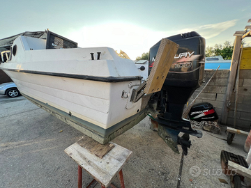 Barca a motore semicabinato con cuccetta, prendisole a prua e pozzetto a poppa. Motore due tempi, tagliandata tutti gli anni, ultima revisione scorso Maggio. Pannello solare per ricarica batteria. Per qualsiasi informazione sono a disposizione