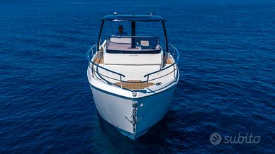 PACK 1 (VERRICELLO, CARICABATTERIA 220V CON 2 PRESE CABINA, 3 PRESE USB CONSOLLE E CABINA, TROMBA ELETTRICA), PACK 2 (IMPIANTO STEREO FUSION CON 4 ALTOPARLANTI RGB, NR. 8 LUCI DI CORTESIA LED POZZETTO E PRUA), COLORE FIANCATA BIANCA, CONSOLLE VERNICIATA NERA, TRIPLA BATTERIA C/DEVIATORE (3x100 AH), ELICA DI PRUA (4° BATTERIA DEDICATA), FLAPS ELETTRICI LENCO CON INDICATORI LED, HARD TOP INOX E VTR NERO CON TENDA DI POPPA, TELO COPRICONSOLLE/SEDILE DI GUIDA E SPALLIERA DI POPPA, MOBILE LATERALE A COMPLETAMENTO L POZZETTO, FRIGORIFERO ESTERNO 85 LT CON INCASSO, CONTACATENA E COMANDO IN CONSOLLE, PIATTAFORMA LATERALE DI SX APRIBILE, PACCHETTO CONSEGNA (TRASPORTO DA MESAGNE FINO A NOSTRA SEDE DI LICOLA(NA)/ANTIVEGETATIVA/VARO ED ASSISTENZA AL PORTO DI BAIA /MONTAGGIO BI-MOTORE/ BARRA DI ACCOPPIAMENTO)