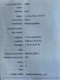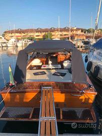 Vendo barca a motore in legno Colombo Barrique, motore Volvo Penta completamente revisionato nel 2019, 100 ore di navigazione, tagliando e antivegetativa annuali, tendalini nuovi. No wc no boiler acqua calda.