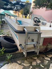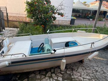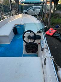 Barca 4 metri completa di accessori come in foto .Completa di cuscineria tendalino e leva comandi sprovvista di motore.Prezzo trattabile