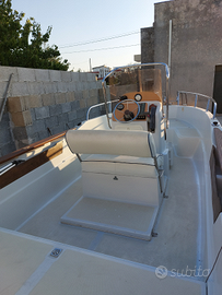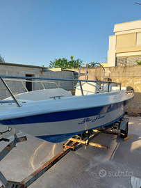Come da titolo vendo barca modello Fisherman 5,50mt + motore a carburatori Yamaha da 40cv. Dotata di ecoscandaglio garmin, pompa di sentina, tendalino, porta canne, luci di via, scaletta e cuscineria in ottime condizioni. Impianto elettrico fatto nuovo. Barca sempre tenuta al coperto.