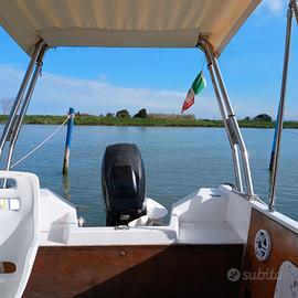 pilotina semicabinata, motore Mercury 40/70 con 300 ore. In cabina cuscineria, lavandino, frigo, fornello e wc chimico. Doppia pompa di sentina, tendalino inox, telo copertura, coprimotore, gps. Grande pozzetto per la pesca e prendisole a prua per giornate al mare. Per tutti i particolari siete invitati a vedere e provare la barca, previo appuntamento. La barca si guida senza patente. Possibilità di posto barca al Circolo Il Cormorano a Calambrone. Prezzo leggermente trattabile. Contattare per messaggio.