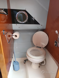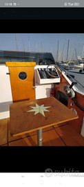 Serbatoio acqua dolce posizionato a prora con autoclave, serbatoio benzina in acciaio portata 150 lt di capienza, paiolato in compensato marino e timoneria con strumentazione, G.P.S. e ecoscandaglio Garmin, doccetta di poppa con spiaggette e scaletta,tendalino copri sole.