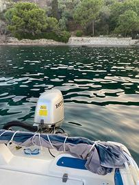 Vendo Open 5 mt colore bianco, fondo azzurro , tappezzeria, tendalino, scaletta in acciaio di risalita, pompa di sentina automatica e manuale nuova installazione, autoclave + serbatoio 55 Lt anno 2024, serbatoio benzina 50 Lt, impianto elettrico nuovo + 2 batterie, 2 casse stereo, presa usb X accessori e ricarica, luci di via, anti vegetativa fondo , ancora, tromba, timone anno 2024, cavi manetta Honda anno 2024, Motore Fb 40 cv 4 tempi, in ottimo stato circa 300 h, consumo bassissimo, tutto il tagliando con girante sostituita, non c'è da fare nulla, la barca è pronta x il mare, conduzione senza patente nautica. Il carrello non è in vendita.