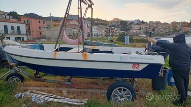 Barca a motore Angelo Molinari con motore 4 tempi YAMAHA a benzina 15 cavalli con accensione elettrica, con tendalino in acciaio, luci di navigazione, scaletta di risalita in acciaio,remi, scalmi, salvagente anulare di salvataggio,tanica 25 litri gilè di salvataggio. no perdi tempo