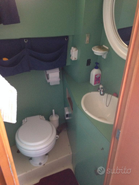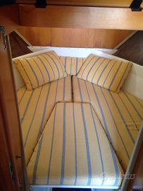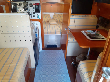 Dotata di una cabina a prua con letto matrimoniale,un bagno con wc,lavandino e doccetta estraibile e un salottino con lavandino e cucina a scomparsa.