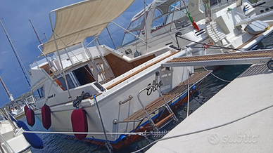 Barca attualmente a terra, scafo in perfette condizioni(barca in vetroresina) con motori entrobordo, motori aifo 8061 sm turbo diesel in linea d'asse 190 cv l'uno,entrambi i motori sono stati sbarcati nel 2023 e sono stati fatti tutti i lavori di manutenzione ordinaria, invertitori twindisc. Coperta esterna rifatta a nuovo con compensato marino da 2 cm.
