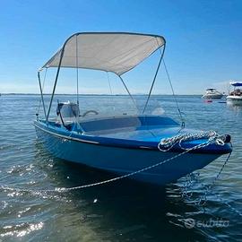 Motoscafo, di circa 5 MT portata 4 persone motore 40hp Evinrude e-tec, Barca completa di sedili a panca abbattibili creando in unico prendisole in pelle sintetica beige fatti da un tappezziere nautico. Tendalino nuovo a due archi. Serbatoio 42 litri nuovo. Impianto elettrico con luci di via autoradio due casse pompa di sentina. Cart plotter 7 pollici Lowrance con mappe navigon 2023. Batteria e stacca batteria console completa di comandi per gestione strumenti illuminata luci interne ed esterne a led. Braket da 4 pollici nuovo. tutte le dotazione di sicurezza quali salvagenti razzo segnalatore e boa galleggiante per i 6 miglia presenti. Barca ricondizionata e ricostruita la scorsa stagione da persona esperta del settore, posso fornire le foto dei lavori eseguiti. barca con motore rimessato con pompa e un iniettore nuovo, con fatture dimostrabili, lavoro fatto da concessionario Evinrude con circa 350 ore di navigazione, il carrello e stato revisionato a maggio 2024.