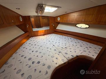 Dotazioni di bordo: 2 cucine (una esterna a gas, l'altra interna elettrica) ed 1 frigorifero, VHF fisso, Navigatore Garmin con ecoscandaglio, radio (maggio 2025), bussola, giubbotti di salvataggio, parabordi.