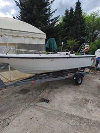 Vendo come da foto barca Open lunghezza 4 m con motore Yamaha 25-40 La barca è stata restaurata in ogni sua parte a gennaio è stata riverniciata antivegetativa fatta a due mesi fa dotata di parabordi nuovi e batteria nuova serbatoio benzina nuovo pronta alla boa Vendo per passaggio a categoria superiore il carrello non è compreso ma sono disponibile a portarvi la barca dove volete