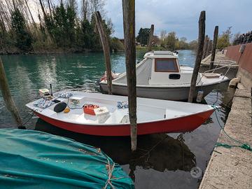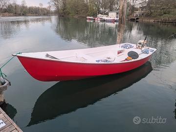 Vendo barca a motore o vela, in legno in perfette condizioni come da foto, lunghezza 470, compresa di gavoni stagni. No perditempo solo realmente interessati all acquisto, possibilità di trasporto. Vendo anche motore 9.9 portato a 15 perfettamente funzionante con libretto a 500 euro.