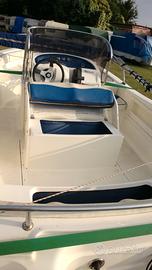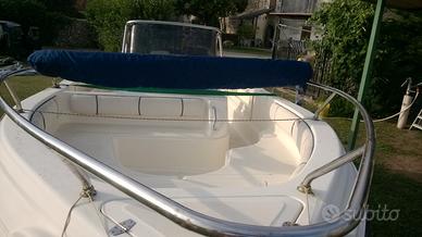Vendita congiunta per inutilizzo barca di tipo open autosvuotante di metri 5,50 di marca Mario Ranieri RANCRAFT con motore Mariner 90 Hp quattro tempi con drim, insieme al carrello marca Reggianarimorchi dotato di 4 sospensioni.