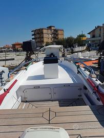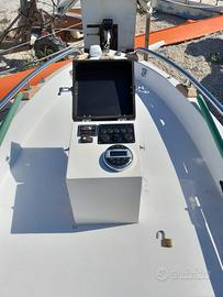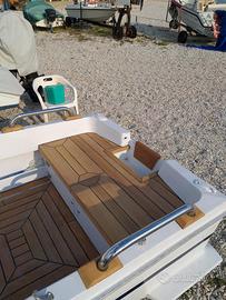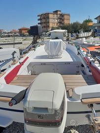 motore johnson 15 cavalli,materiale barca vetroresina e interno teak dotazione 6 salvagente,2remi,kit salvataggio,stereo luci di via e gavoni,presa banchina,carrello motorizzato.