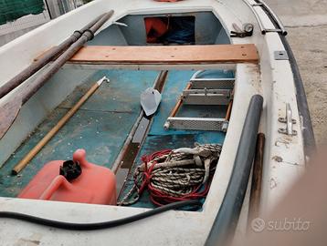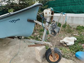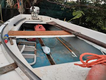 Vendo barca a motore, come da foto. 4 metri, fondo piatto tipo battana. motore Johnson 15cv. Carrello alaggio in acciaio, doppio verricello, remi, scaletta, N2 giubbini salvataggio e ancora.