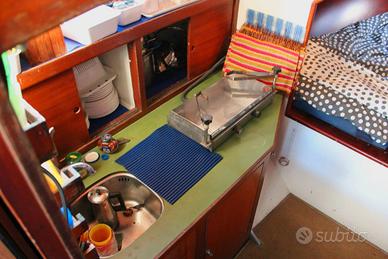 Imbarcazione d'epoca a motore in legno 6 posti letto progettata dal progettista navale Ray Hunt - Costruita dai cantieri COSCA LIMITI SULL'ARNO - anno di costruzione 1970. Dinette con frigo (2 divani letto, 4 posti letto), cucinotto, bagno e cabina di prua (2 posti letto). Pozzetto di poppa 3.60mx3.60m con tavolo in tek + 7 sedie regista + tendalino ombreggiante. Lunghezza 13m - Larghezza 3.60m - Pescaggio 70cm 2 motori AIFO diesel da 250 cavalli cad. con pochissime ore di navigazione. Consumo medio 50 l/h - Capienza serbatoio gasolio oltre 600 l - Serbatoio acqua potabile da 500 l. Velocità di crociera 19/20 nodi - Velocità max 24 nodi. Guida esterna su Flybridge Batte bandiera polacca (immatricolata in Polonia)