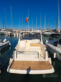 barca a motore quasar 24 cantiere costa dell'est di Ancona, anno 2008, lunghezza 7,24 metri + spiaggietta. motore nanni diesel turbo, mod. 4.390TDI, cilindrata 2982 cc, 147,2 kw, potenza cavalli 200,13 locale bagno separato con lavabo, cucina fuochi, frigo, letto matrimoniale e cabina poppa per ragazzi, tenuta bene, consumi molto bassi, dotazioni sicurezza, cusscineria, tendalino, attualmente in acqua, GPS ecoscandaglio