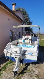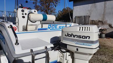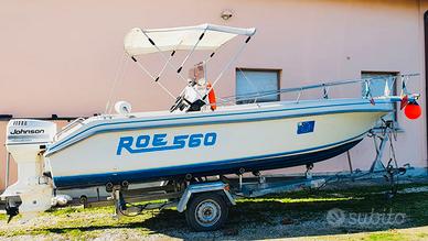 Vendo barca ROE 560 omologata 12 miglia, motore Jionson 115 cv + Tomos 4, carrello stradale ellebi, GPS cartografico, zattera per 6 persone, tendalino, attrezzatura completa 12 miglia, 2 batterie, doccetta e luci di via