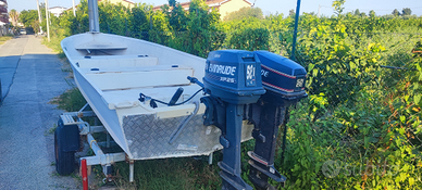 Vendo barca in alluminio di metri 5 , per mancato utilizzo, completamente restaurata , con motore funzionante evinrude 25 CV XP con relativo libretto, accensione elettrica, la barca Inoltre è attrezzata con 7 porta canne , pompa di sentina ed Inoltre regalo un secondo motore XP Evinrude per eventuali ricambi Prezzo 1200 euro non trattabili " VISTA E PIACIUTA "