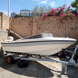 Salve vendo no regalo...barca motoscafo a motore con Motore Johnson 70 CV due tempi, la barca e il modello rio 4,70 MT molto veloce e robusta, fa 40 nodi di GPS,da rifare la tappezzeria sedili anteriori, completo di carrello zincato ellebi, ma senza documenti, prezzo non trattabile astensione da affaristi e perditempo grazie