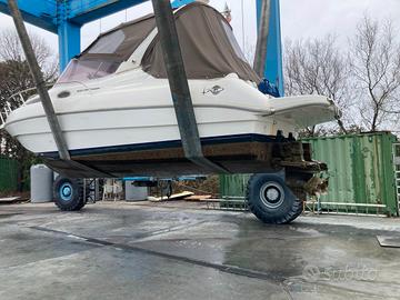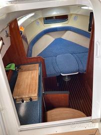 Rio 750 Cruiser del 2004, motori Mercruiser 3.0 benzina 2x135 hp. Lunghezza f.t. mt 8,66. Matrimoniale a prua + cuccetta. Teak interno e su spiaggetta allungata. Un frigo in cabina ed uno nel pozzetto, 2 fuochi a gas, materasso matrimoniale a prua fatto su misura per problemi di mal di schiena, wc marino, TV, autoradio con casse interne ed esterne, doccino esterno, GPS, ecoscandaglio, VHF fisso, salpa ancora elettrico. Nel 2025 sostituiti su entrambi i motori i collettori riser, il cavo marcia, tutte le cuffie e le giranti dei piedi, oltre alla manutenzione ordinaria (sostituzione filtri, cambio olio, ecc.). Sempre nel 2025 sostituite tutte e 3 le batterie (motore e servizi).