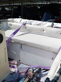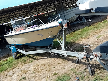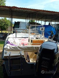 Barca autosvuotante con tendalino nuovo ecoscandaglio , impianto elettrico revisionato e perfettamente funzionante, autoradio, prese usb, sedili in similpelle nuovi, borsa nautica completa,salvagente a ciambella, 2 ancore una con catena ,4 portacanne, Monta motore Suzuki 40 cv 4 tempi perfetto "qualsiasi prova" 4 brache per la messa in acqua con gru carrello impianto elettrico nuovo e freni ok revisionato la barca è assicurata fino a maggio 2026 e ha il rimessaggio al coperto pagato fino a dicembre .