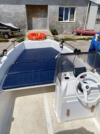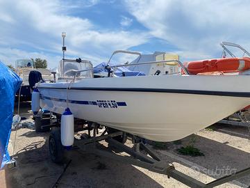 Vendo splendida Barca Mingolla 4,5 m con motore Yamaha 25 CV (poche ore di navigazione), perfettamente tagliandato e revisionato con certificazione, dotato di trim. Il mezzo è completo di carrello da cantiere rinforzato con barre in legno e vano dedicato per un eventuale motore di riserva, stacca/attacca batteria per maggiore praticità e sicurezza. A bordo troverete parabordi, luci notturne, portacanne e tendalino per giornate in relax, oltre all'equipaggiamento di sicurezza completo (giubbotti, anello di salvataggio), remi e mezzomarinaio. L'ecoscandaglio integrato e i gavoni a prua e a poppa offrono funzionalità e spazio per tutto il necessario. Pronta per uscire in mare, si trova presso il cantiere di Lama (TA). Prezzo € 4.500, non trattabili. No perditempo. Per foto e info scrivere su WhatsApp al 340 785 3317.
