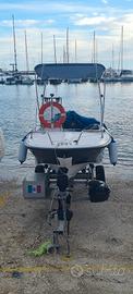 La barca è dotata dei seguenti accessori:Attacca e stacca batteria,doppio serbatoio benzina, pompa di sentina,rollbar con tendalino luci di via e 360'applicate,strumentazione motore e strumentazione di regolazione trimmer,tromba e stereo con due altoparlanti,quattro parabordi,bitte, corrimano acciaio inox,tavolino,ampi gavoni,cuscineria completa nuova non visibile nelle foto poiché riposta nel periodo invernale in luogo asciutto per preservarlo.