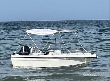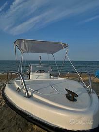 Vendo stupenda barca pronta per il mare, ideale sia per una giornata di relax sia per la pesca , ha già 2 serbatoi, due batterie,2 pompe sentina , remi decomponibili nuovissimi ,estintore nuovo di pacca , ancora ad ombrello , tendalino nuovo , tutti i comandi sulla consolle , motore 25/40 mercury america 2 tempi , carrello per spostamenti in spiaggia .