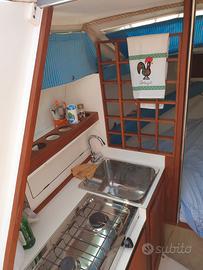Vendo per passaggio a gommone Rio 7,50 cabin 4 posti letto interni totalmente rifatti, dispone di due motori Mercruiser 3.0 lx perfettamente funzionanti + un blocco motore completo di testata per ricambi. Carrello doppio asse di 3 anni portata 22000 kg marca Satellite, La barca è dotata di due pannelli solari da 200 Watts,tre batterie,caricabatterie,doccia esterna, scaldabagno rapido,200 LT acqua, cuscineria esterna nuova, letto grande in memory,tendalino invernale per campeggio nuovo di due anni ,spiaggetta allungata e tanti altri lavori. Possibilità di permuta con gommone 7 metri di mio gradimento. O Moto d'acqua con carrello di mio gradimento.